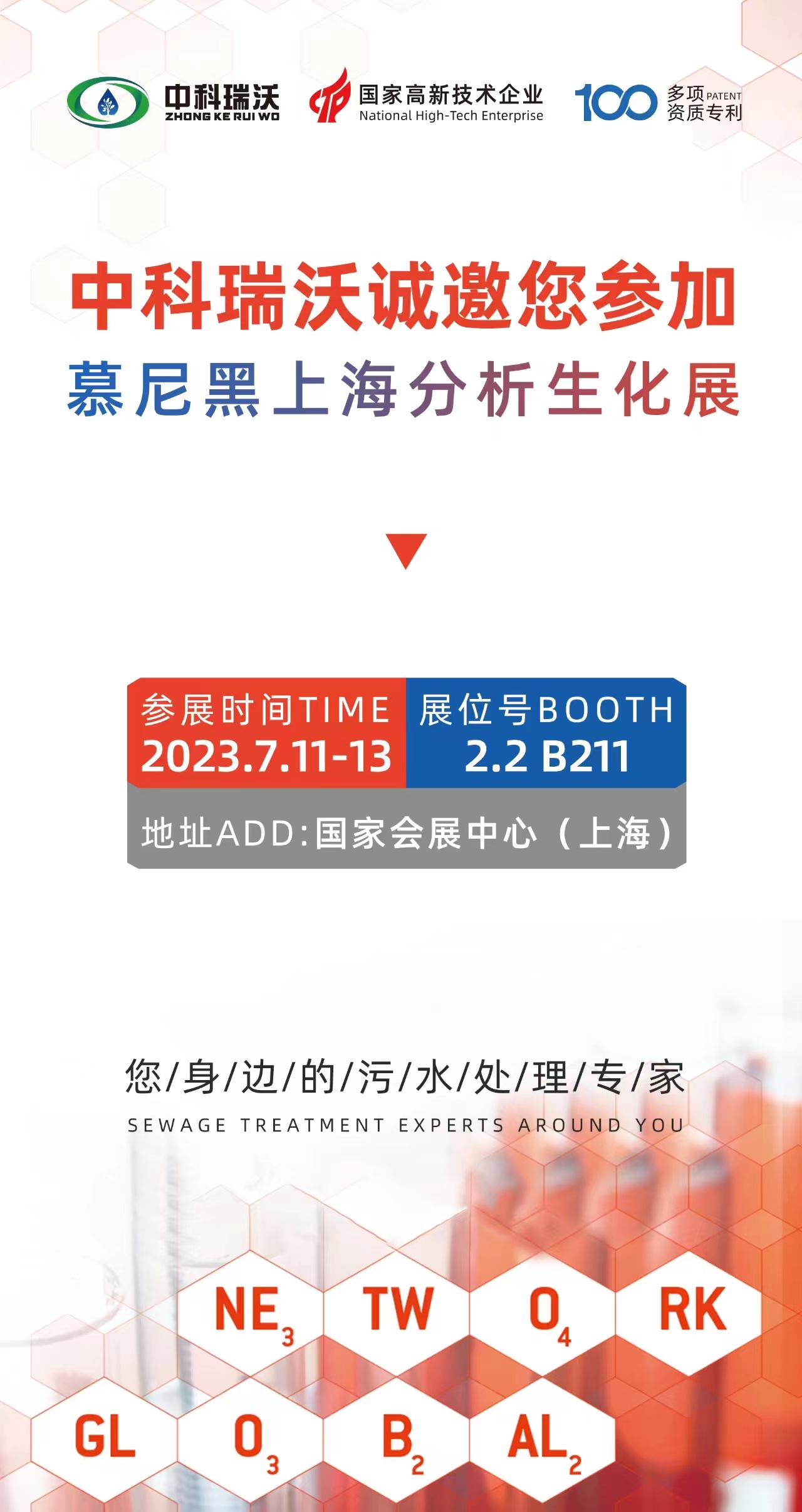 慕尼黑上海分析生化展將於7月11日-13日開展,為期三天,誠邀您蒞臨國家會展中心黄瓜视频软件2.2 B211展位,黄瓜视频软件將為您提供專業係統化的黄瓜免费视频APP汙水解決方案!