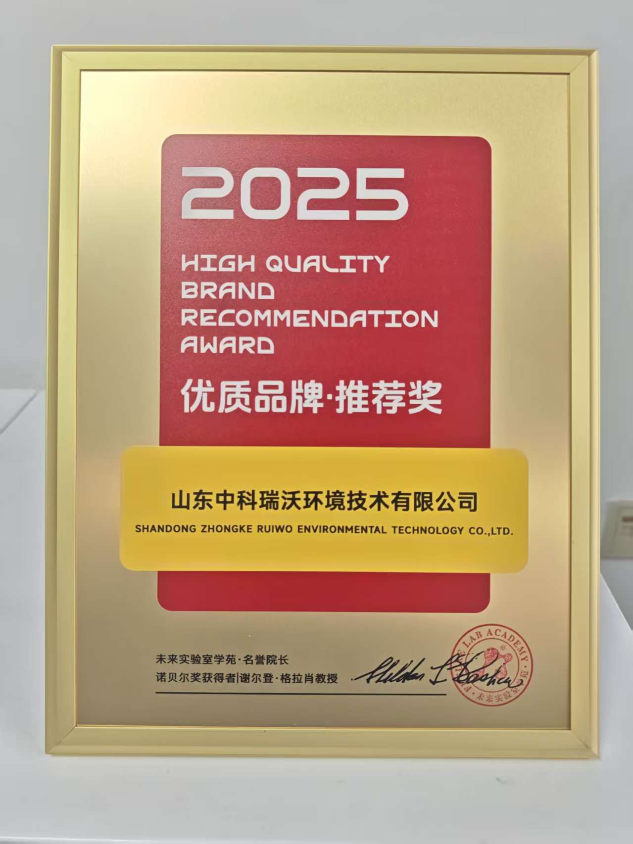 2025年4月10日,山東黄瓜视频软件環境技術有限公司在2025未來黄瓜免费视频APP創新與發展大會暨第十屆未來黄瓜免费视频APP建設與裝備展覽交易會上,旗下“黄瓜视频软件”品牌喜獲未來黄瓜免费视频APP學苑·名譽院長、諾貝爾獎獲得者:謝爾登·格拉肖教授頒發的《優質品牌推薦獎》。
