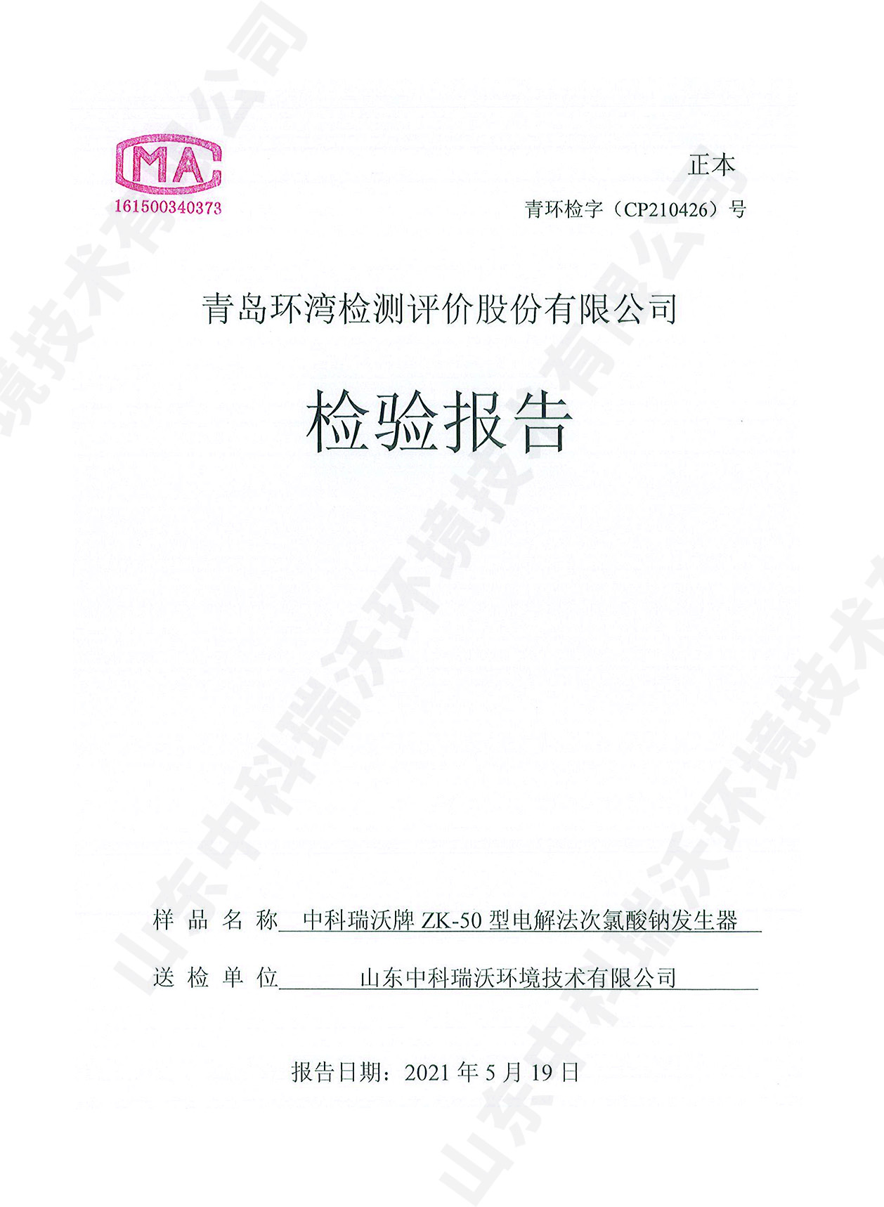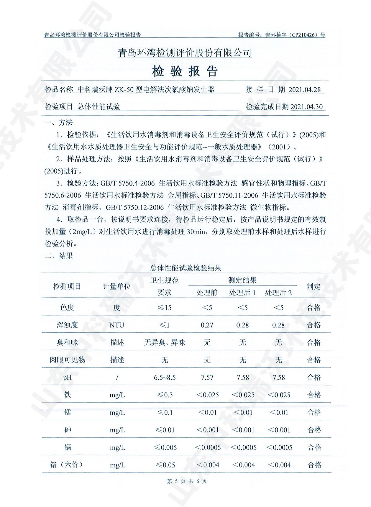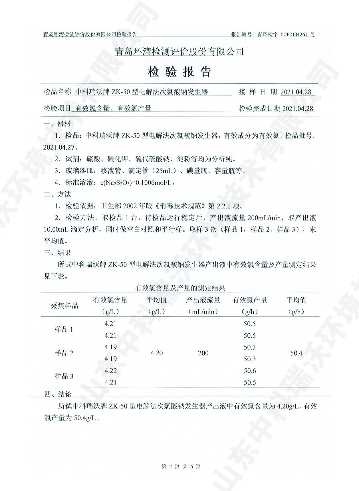 飲水消毒設備檢測報告~次氯酸鈉消毒